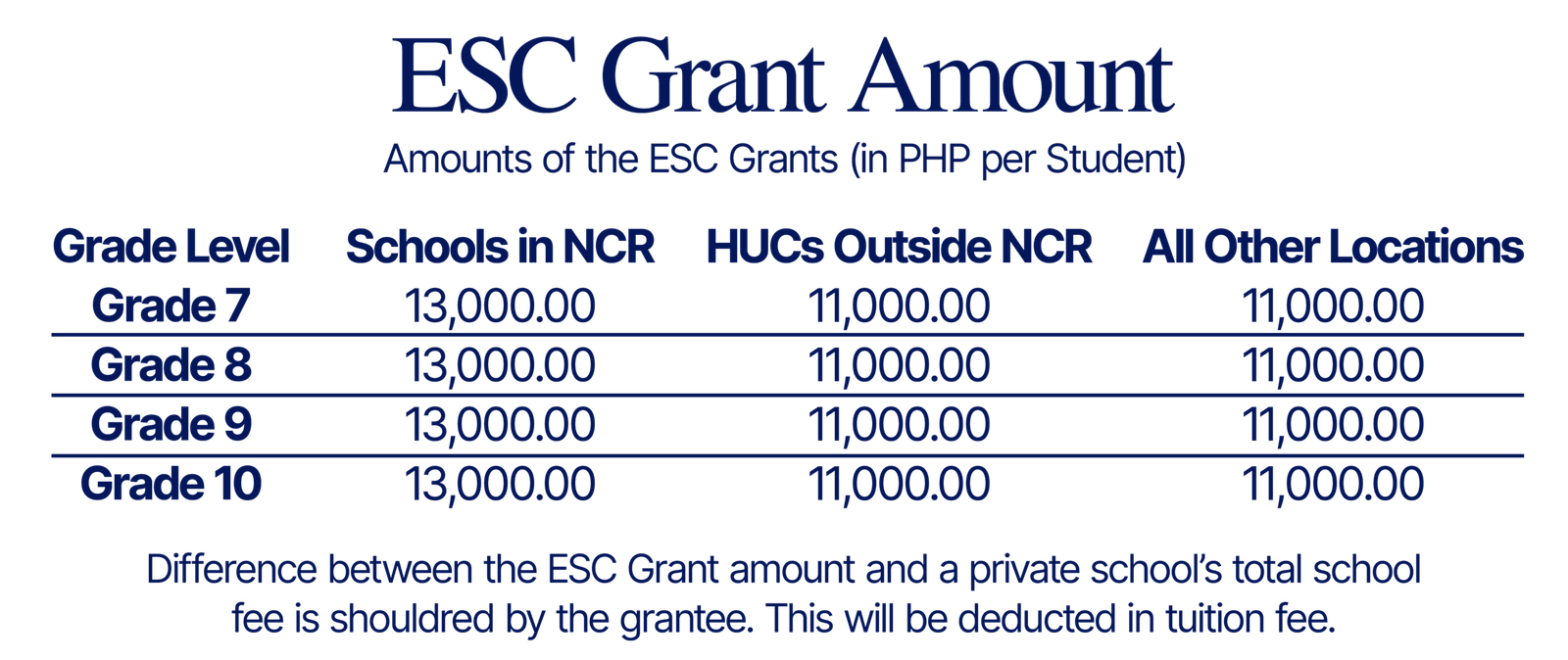 The Educational Service Contracting scheme, or ESC, is a program provided for by the Republic Act 8545 (amending R.A. 6728), or the Expanded Government Assistance to Students and Teachers in Private Education, or GASTPE. Its main objective is to decongest public secondary schools by “contracting” the excess capacities of private high schools through the provision of subsidies for students who, otherwise, would have gone to public high schools. The ESC was a response to stresses and strains at the high school level in both public and private school sectors.